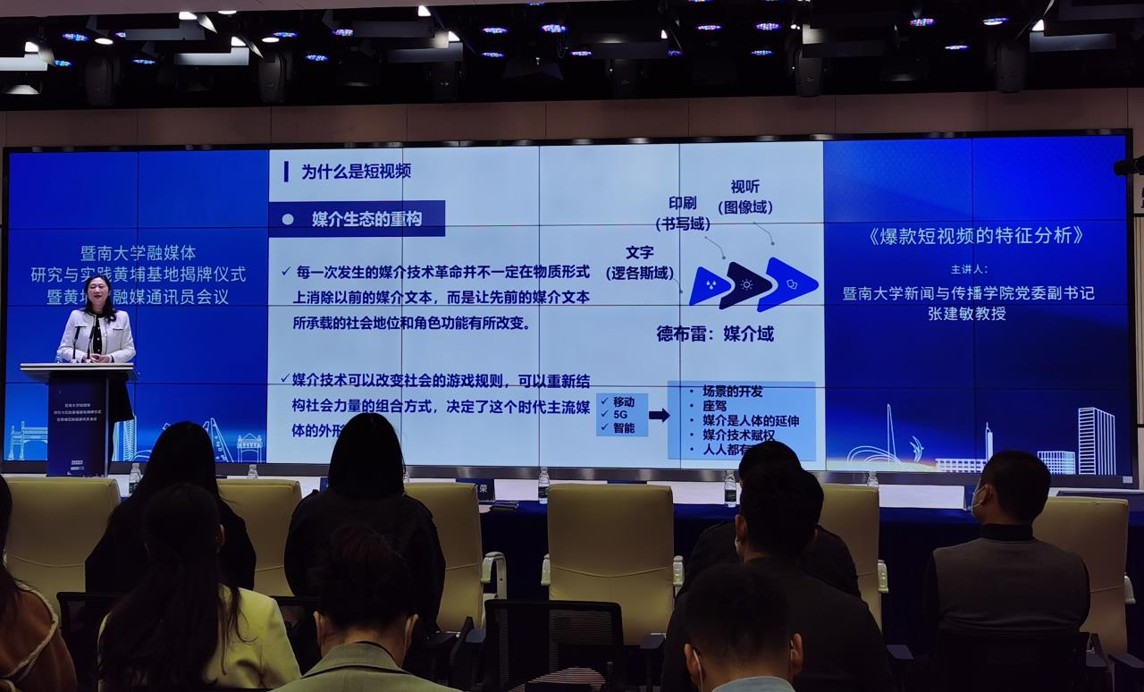 黄埔区委宣传部、黄埔区融媒体中心与暨南大学合作共建的“暨南大学融媒体研究与实践黄埔基地”揭牌。该基地是暨南大学新闻与传播学院首次在中心城市的区级融媒体中心开展合作共建项目,对加强全媒体传播体系建设、探索区县融媒高质量发展模式、推进基层媒体深度融合具有重要意义。