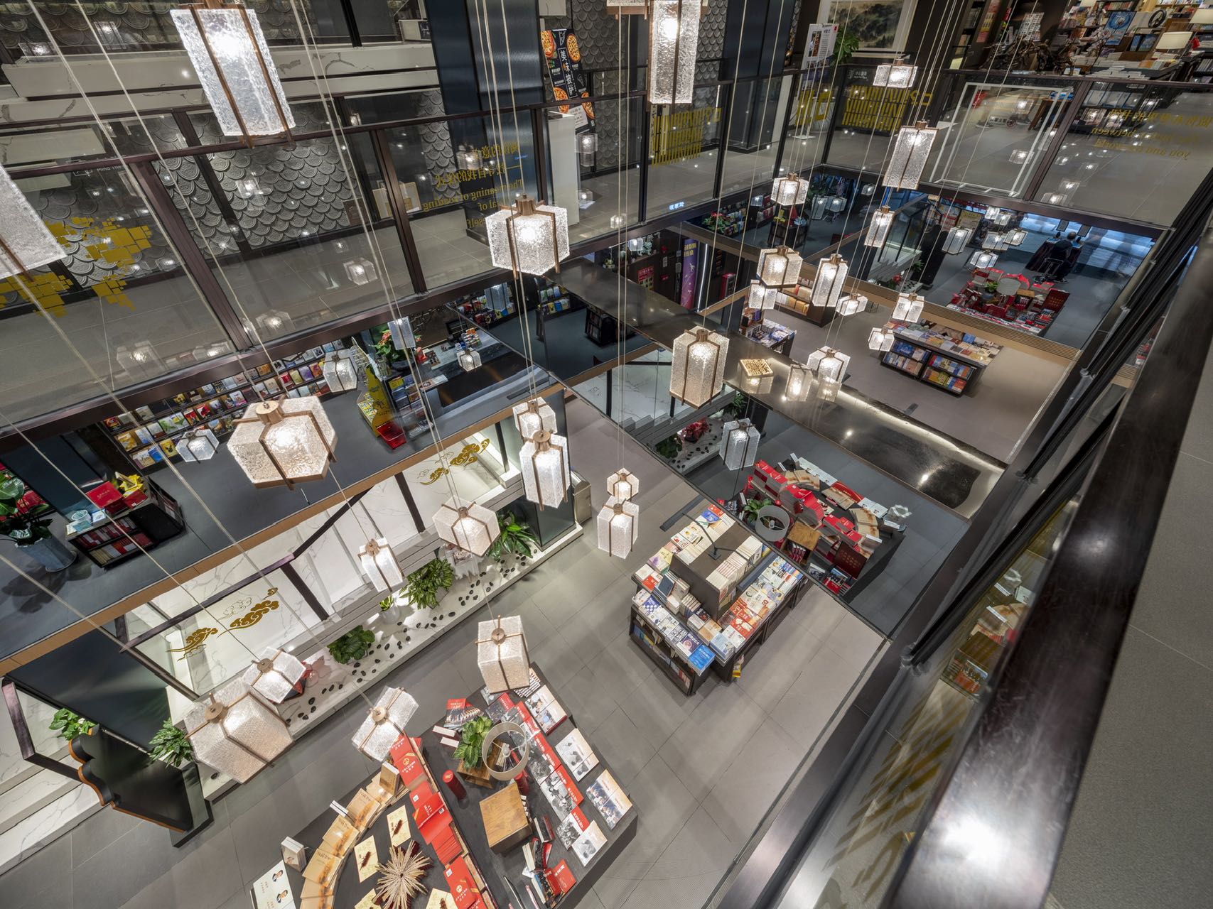 书香羊城,作为城市之魂,书店既是精神文化殿堂,也是心灵情怀安身之所。设计团队从西关大屋的建筑中,借鉴了宣扬正气的“庭”和雅致情趣的“院”的手法,“门官厅”采用雍容大气的中庭将主厅定调,“博古通今”“鸿儒”则是老广州人的价值观。走过主厅看到,这里以层层院落的生活景致,来打造都市生活中修身齐家的普通寻常;在后院错落分布了大小不一的多个品书斋,成为广州人隐于闹市中求得小闲的安心之处。