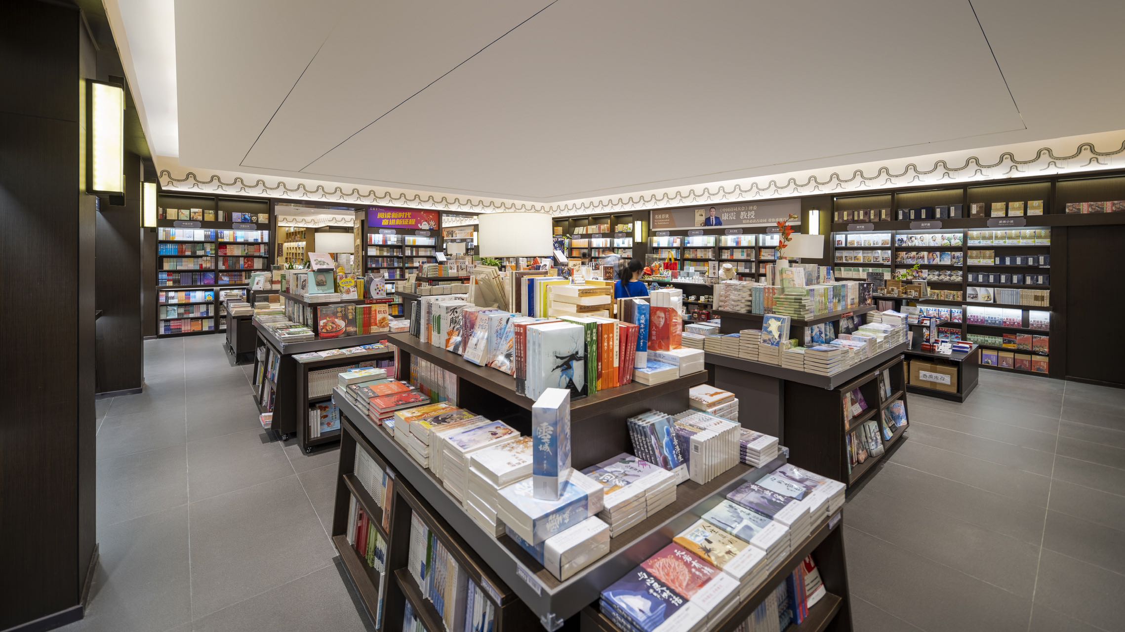 既有传统的山水美学,也有现代的简约梦幻。2022年,广州购书中心番禺店以城市传统文脉为基础,通过发掘广州本土文化和生活的多元内涵,构建城市新阅读体验空间,最终斩获法国巴黎DNA室内设计类别大奖“优胜奖”。一年之后喜讯再至,广州新华书店“北京路书店”在全球众多参赛作品中突围,以岭南风貌打造时代记忆,获得“2023柏林设计奖”室内设计——国际展销厅/旗舰店类“银奖” 。