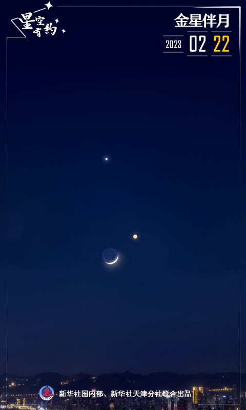 天文科普专家介绍,2月22日傍晚,西南方低空将上演“浪漫一幕”——明亮的金星与极细的月牙近距离相伴,赏心悦目,煞是好看。