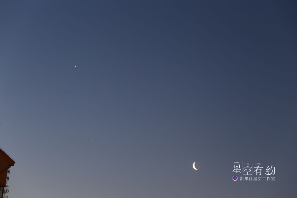 金星伴月是最好看的“星月童话”,这是因为通常情况下,金星和月亮是夜空中最亮的两个天体,且二者相伴时,月相一定是如钩般的蛾眉月或残月。