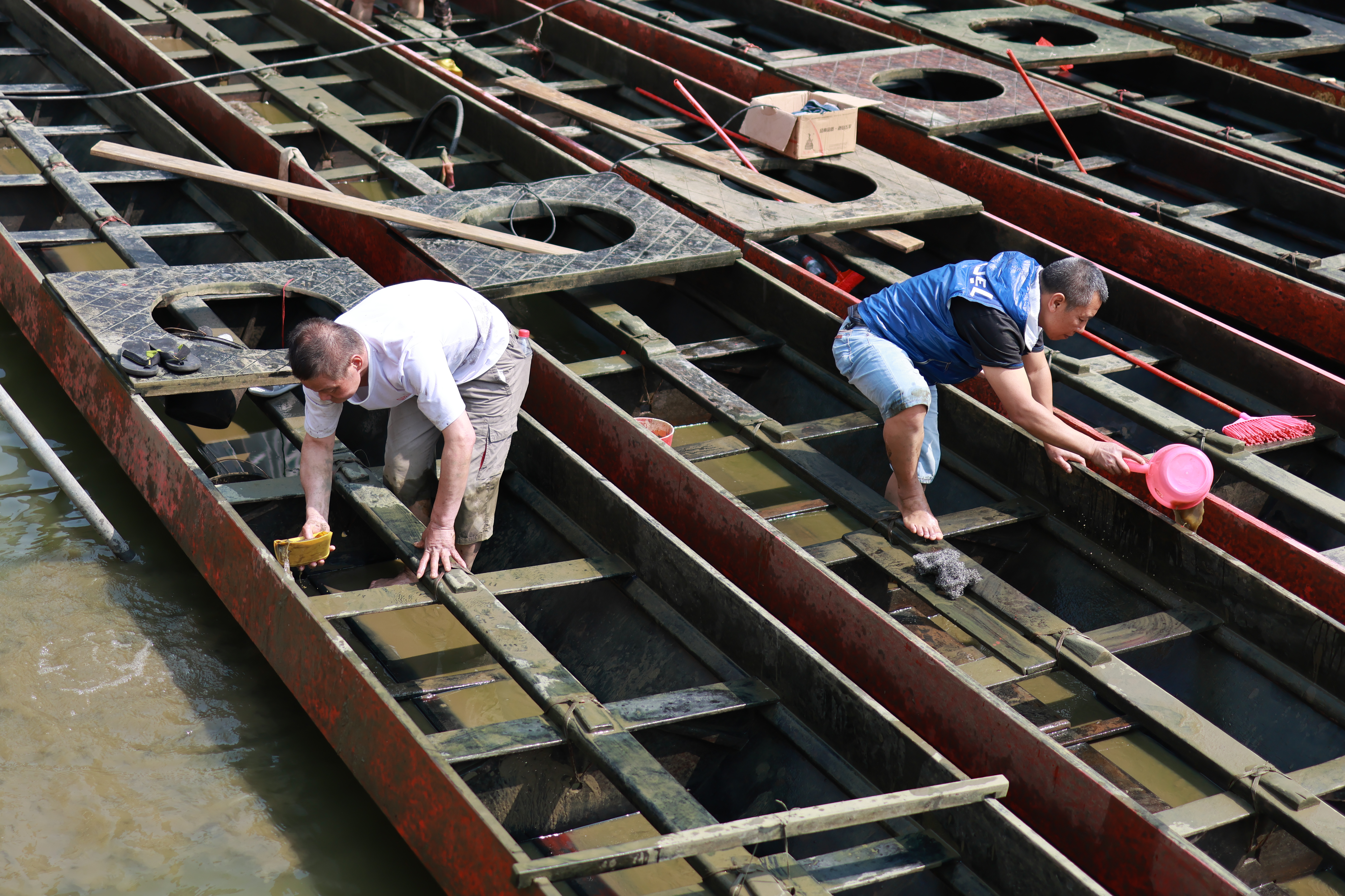 按照传统,起龙仪式上,青壮年将埋于河床中的龙船抬起,村民们将其固定在岸边,手持颜料模具,为龙船船身的两边画上漂亮的图案,经过一番“打扮”和保养,就做好准备迎接端午赛龙舟了。