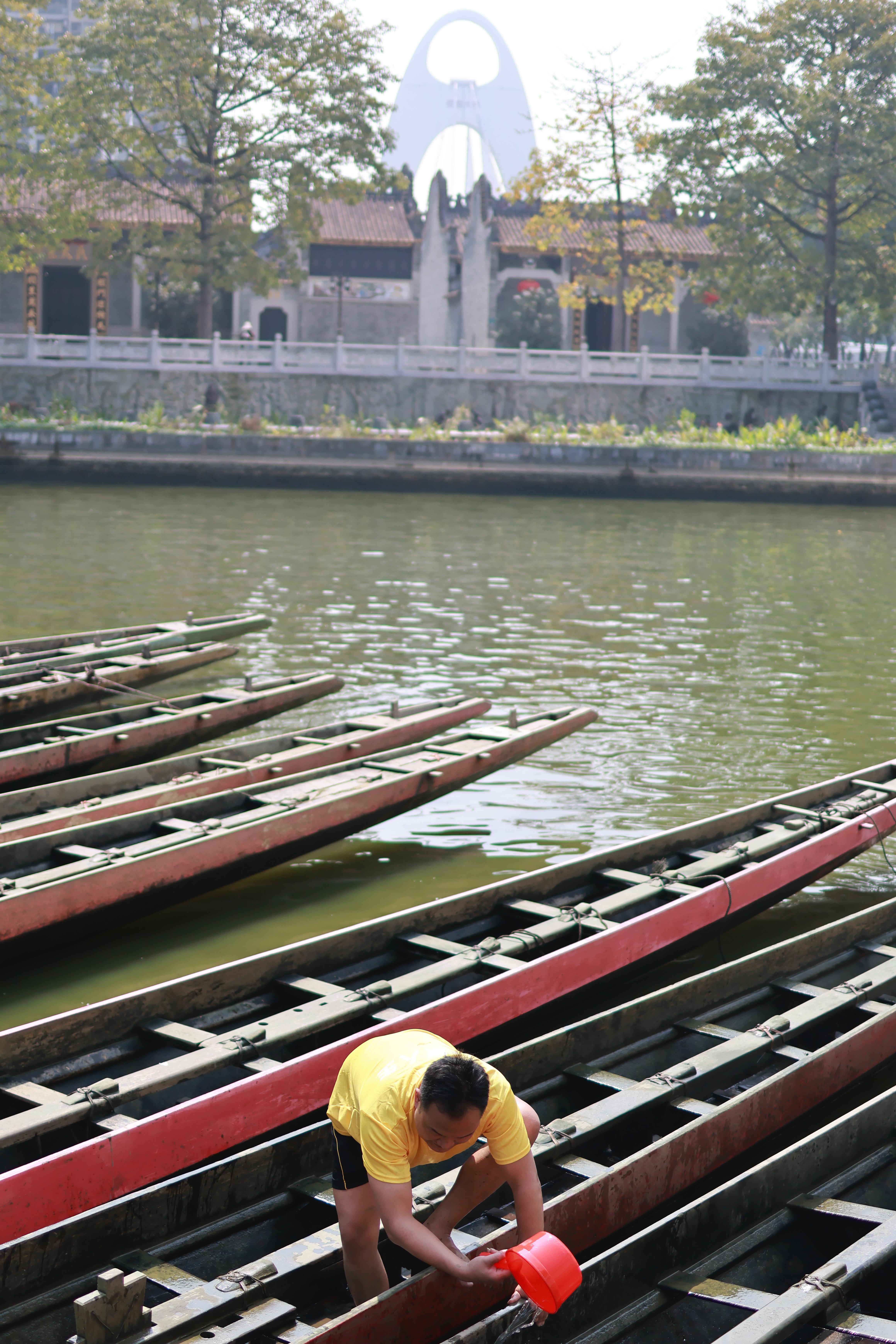 “从昨天开始,藏龙塘就开始放水,龙舟便开始逐渐露出真容。今天的仪式比较简单,早上九点左右,我们便开始拜神祈福,之后在龙舟队队长和猎德长老的指挥下,大家开始洗龙舟。”李志峰说。