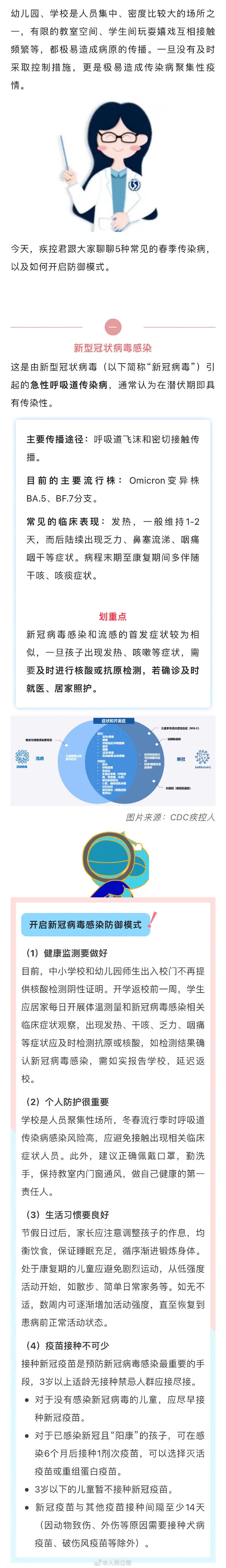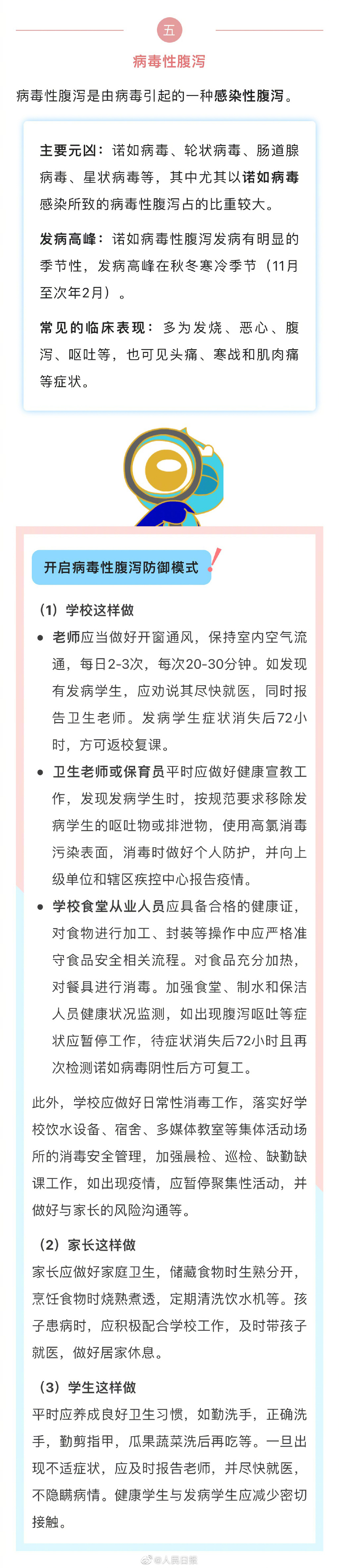 幼儿园、学校是人员集中、密度比较大的场所之一,有限的教室空间、学生间接触频繁等,都极易造成病原的传播。流感、病毒性腹泻、手足口病,开学季叠加春季流行病高发期,如何顺利度过?9图速览↓↓↓若出现不适症状,及时就医。