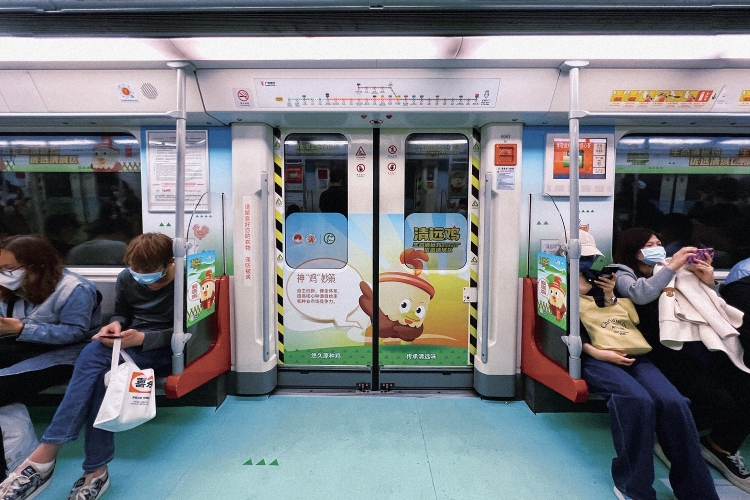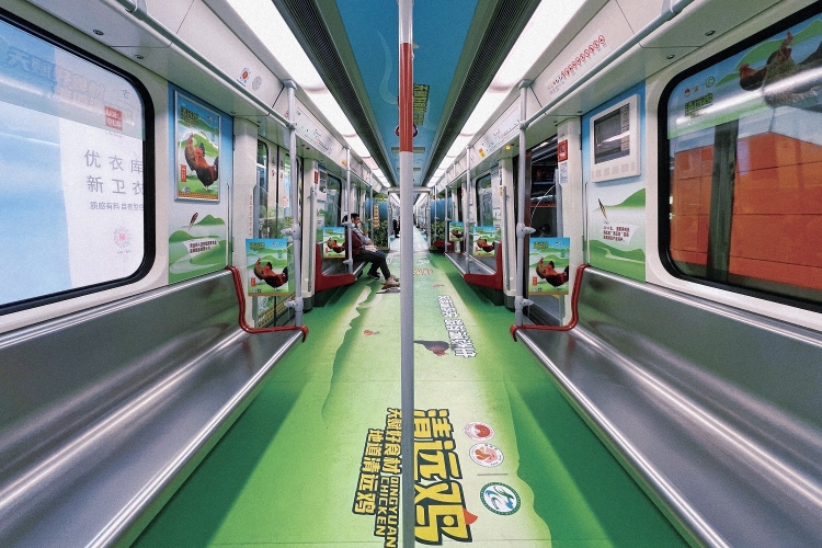 在开往广州体育西路方向的地铁3号线上,“清远鸡”漫步在山涧小溪的图片映入眼帘,让人眼前一亮,乘坐地铁的广州市民仿佛置身于大自然的环抱中,在这绿意盎然的春天里点燃着高质量发展的希望。