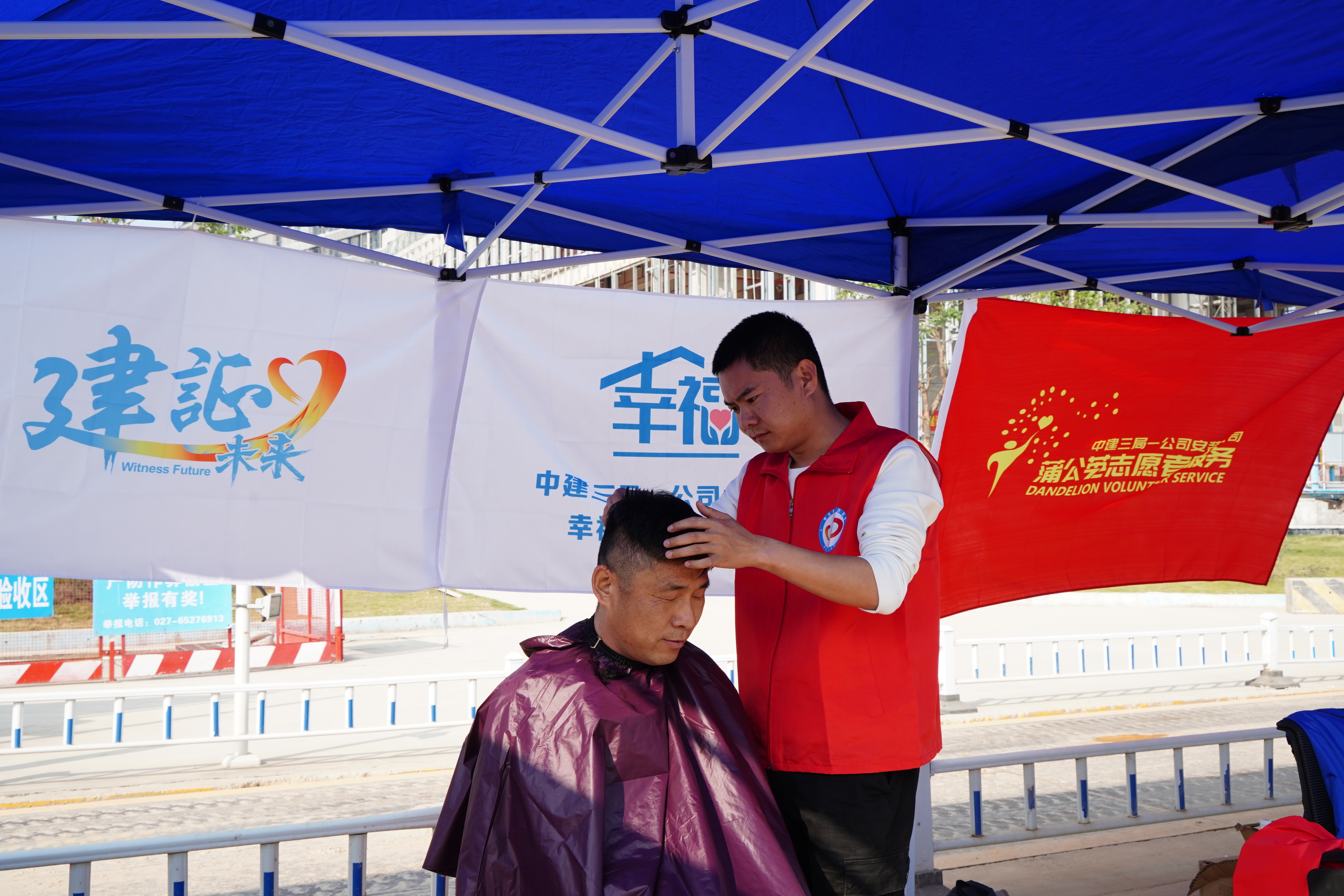 “没想到剪发的手艺还能给工友们带来便利,以后我还要继续给大家服务!”来自中建三局一公司的青年志愿者黄朝昇是一名退伍军人,在部队里他自学了剪发的手艺,在活动现场也派上了用场,为3名工友提供了理发服务。