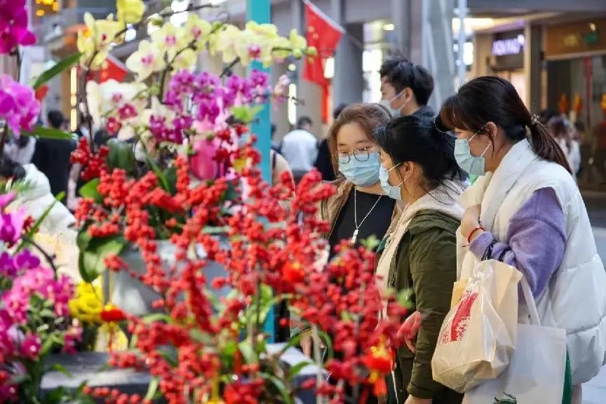 素有“百年花市”的越秀花市2023年重返线下,花城广州热闹迎春。各街道、社区设置的社区花市,让街坊们在“家门口”就能买花、赏花,充分感受人间烟火气。