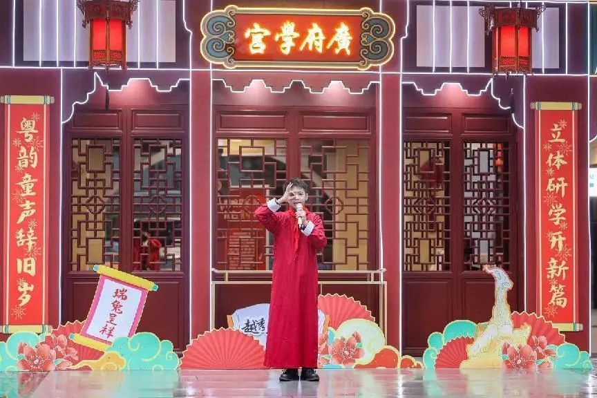 来自越秀区的青少年们走进社区开展红色研学活动,他们演唱粤语童谣、进行粤语讲古、介绍研学成果,在趣味体验中感受广府味、民俗味、文化味。在穗过年的粤港澳青年,走进北京路参观历史文化景点,体验新春民俗活动,开启广府文化之旅。