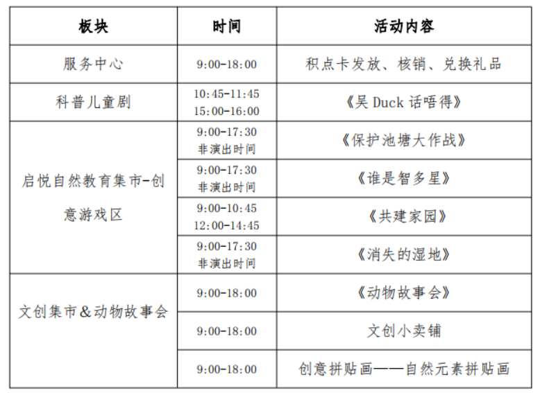 《吴DUCK话唔得》的故事讲述鸭子要代做池塘的管理员的故事,通过演绎,让孩子们从中感受什么是爱与包容。此外,嘉年华舞台中心还设立创意游戏区,共有四个创意小游戏,围绕儿童剧的主旨内容,将生态环境保护理念和科普知识通过游戏化互动环节传递给大家。