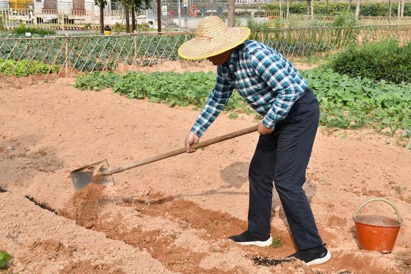当天下午,宋如郊在位于深圳楼村湿地公园的中科附高专属劳动与科普教育实践基地,开展蔬菜种植活动。
