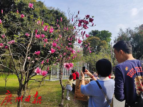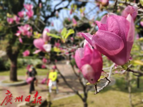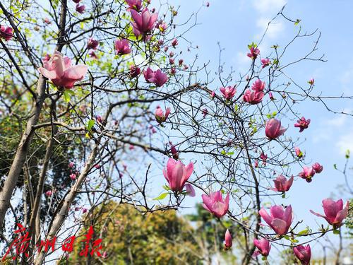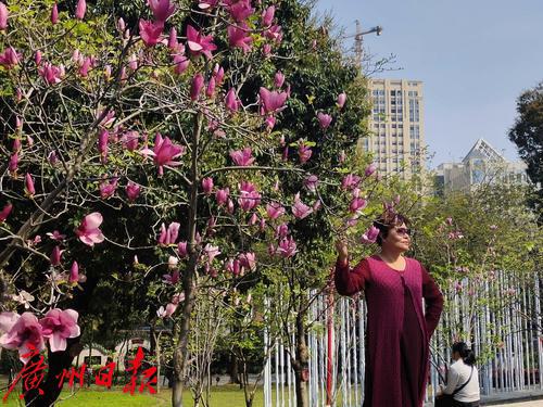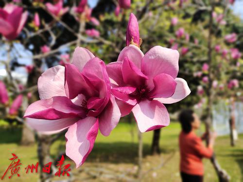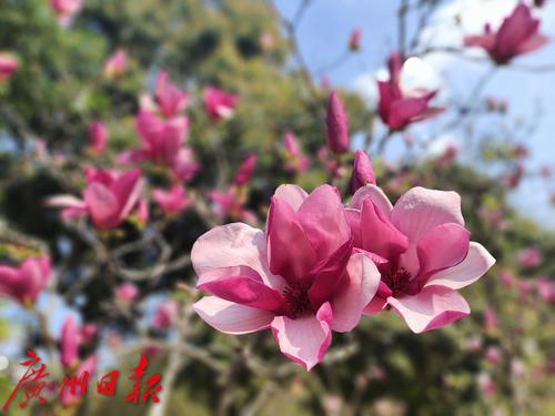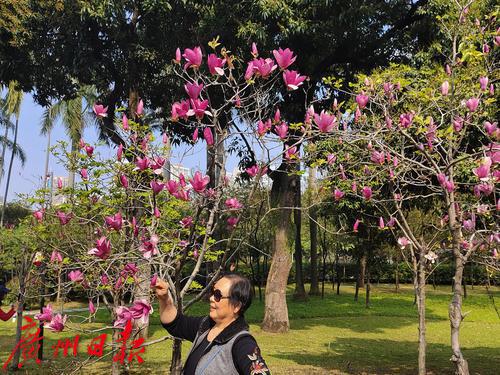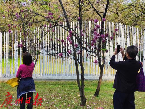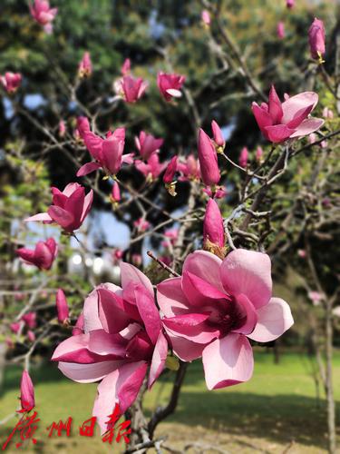 近日,位于烈士陵园公园东门附近的玉堂春已经绽放。记者看到,20多株玉堂春种植在花卉馆草地上,远看两三米高的枝头上挂满了紫色、白色的花朵,在阳光下显得幽雅飘逸、雍容华贵,成了公园里的一道美丽景致,吸引不少市民前来观赏及拍照。据了解,烈士陵园是广州市内欣赏玉堂春比较集中的地方。