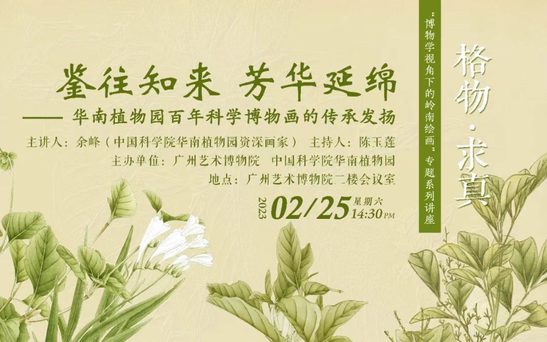本周六,作为展览的配套活动之一,“鉴往知来 芳华延绵——华南植物园百年科学博物画的传承发扬”讲座将在艺博院举行。中国科学院华南植物园资深画家余峰老师将从植物科学画历史脉络的梳理以及如何创作植物科学画两个方面展开,尤其是创作这方面,她将分享自己几十年来的创作经验,通过墨线图、彩色画这两种类型讲述不同的创作原则;材料、技法的选择与运用等实用知识。