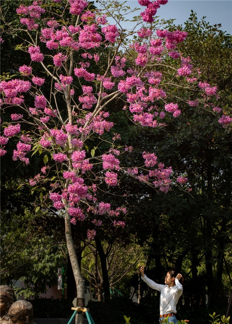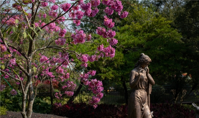 白云新城的广州市儿童公园内,目之所及,紫花风铃木、簕杜鹃等各色花木也是竞相绽放,吸引众多市民游客驻足观赏、拍照打卡。
