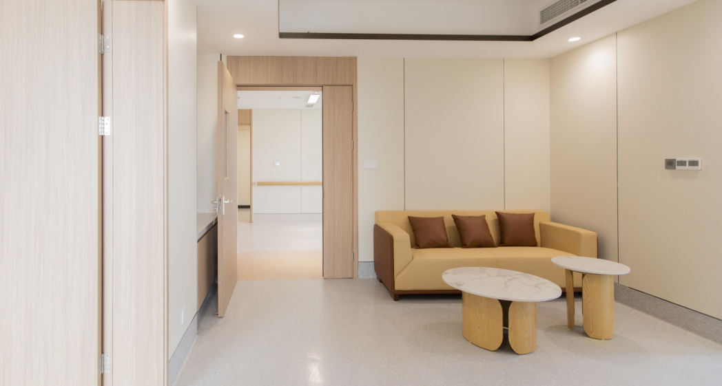 ▲国际医疗中心病房内部配置家属陪护房及小型客厅院区