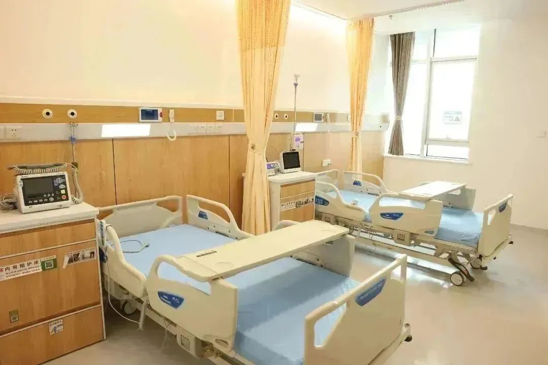 出于让患者舒缓精神、放松心情的考虑,窗帘、病床背板、床边柜均采用了米咖色和原木色纹理的搭配,打造贴近自然、温馨的居家式疗养空间,让患者在住院时的身心得到充分休养。