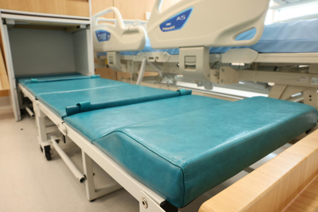 ▲床柜一体的设计简易了陪护床的收放,减少对过道的占用,抑菌透气的皮料和高弹力的海绵会在有限的空间里提供最舒适的体验