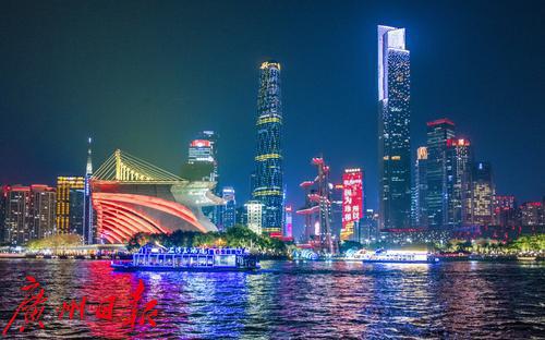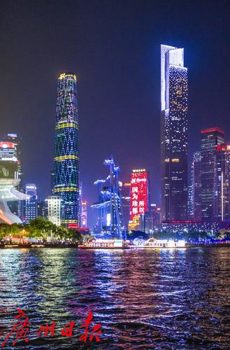 2月27日夜,从珠江南岸眺望广州的新中轴线珠江新城花城广场一带,只见灯光璀璨夜景如画,江上不时有游船穿梭,吸引了不少游人在此观景拍照。