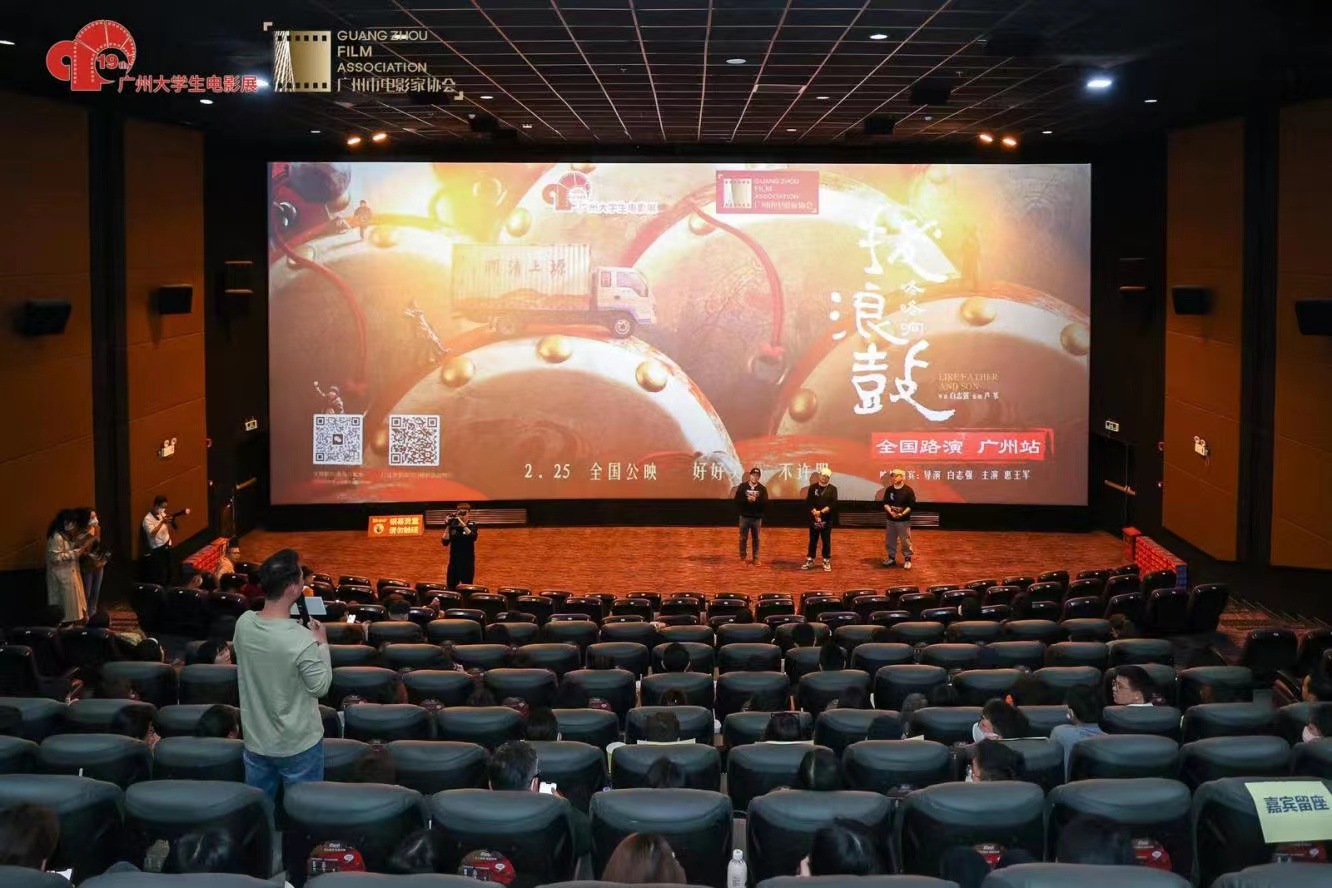 2月26日,由广州市委宣传部、广州市文联指导,广州市电影家协会主办,广州市演出电影有限公司承办的“第十九届广州大学生电影展优秀青年电影展映——电影《拨浪鼓咚咚响》展映活动”在天娱广场天河电影城举行。映后,《拨浪鼓咚咚响》导演白志强、主角惠王军与在场300名大学生共同分享了电影创作的心路历程、揭秘幕后的创作故事。
