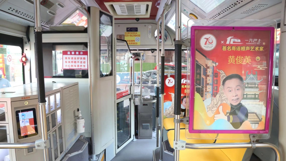 “各位朋友,而家你地坐紧嘅系——四路车!”据介绍,全国首条粤语相声主题公交线由广州市一汽巴士有限公司联合广州市艺术名家黄俊英工作室打造,在4路线中先行打造2辆粤语相声主题公交车。“4路线是广州历史悠久的公交线路之一,连接荔湾、越秀两个老城区,途经彩虹戏院、海珠广场、流花湖公园等广州历史街区和地标。”一汽巴士相关负责人介绍称,通过将公交车打造为新式粤语相声展示移动传播平台,希望能让更多市民耳濡目染,喜欢上这一传统文化。
