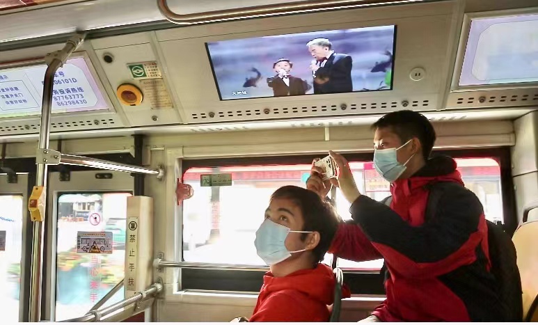 此外,一汽巴士还联合黄俊英工作室精心挑选了《肥仔米》《三六九查户口》《成语新篇》等9条经典粤语相声片段,市民乘客只需扫一扫车厢上的二维码,即可欣赏“广东人自己的相声”。“黄俊英老师陪伴着我们这一代人成长,是家喻户晓的相声大师、开心果,带给我们无限笑声。坐公交还能听到相声,很有特色。”居住在西华路附近的黄姨特意前来搭乘体验。