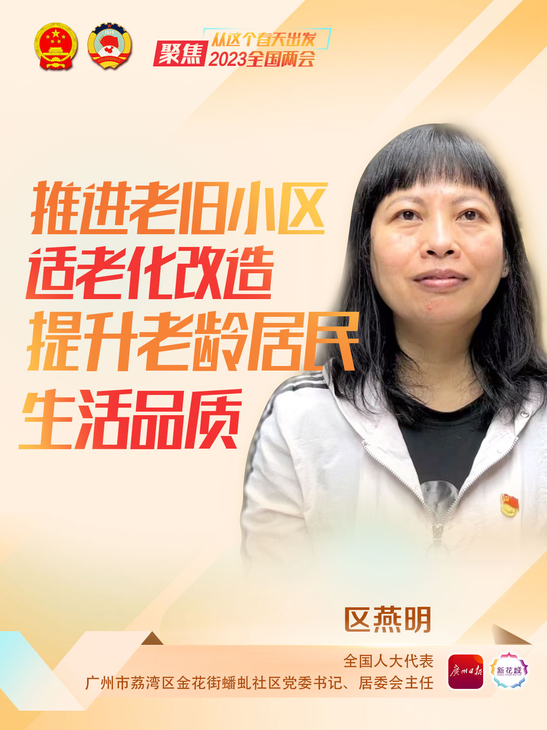 第十四届全国人大代表,荔湾区金花街蟠虬社区党委书记、居委会主任区燕明扎根基层24年。基层工作千头万绪、错综复杂,又与群众生活最为贴近,这些都是区燕明作为人大代表履职尽责的底色。如何大力推进老旧小区的适老化改造,高质量改善人民群众生活品质,将是她在今年两会上着重关注的问题。