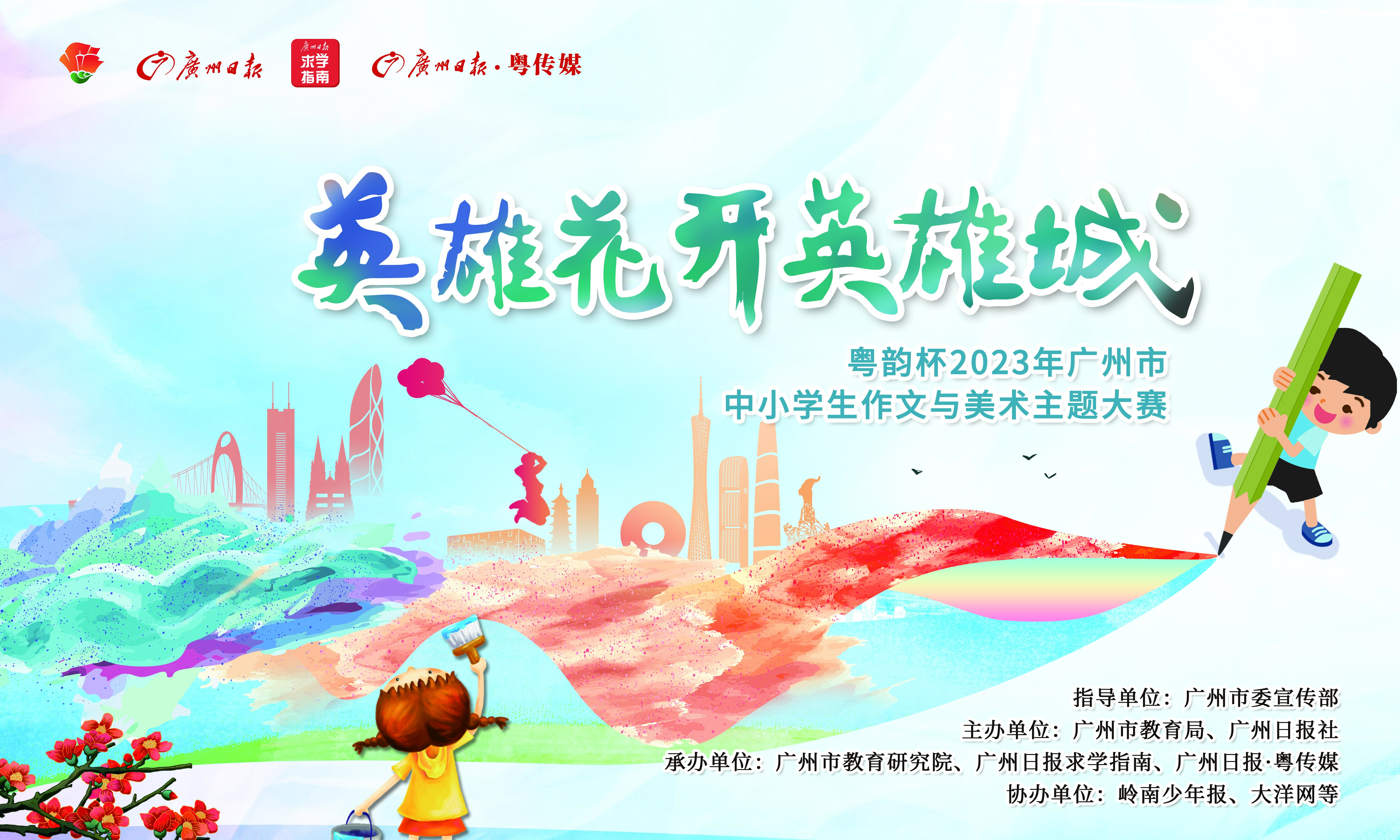 作为活动的重头戏之一,由广州市委宣传部指导、广州市教育局与广州日报社联合主办,广州市教育研究院、广州日报求学指南工作室、粤传媒承办,岭南少年报、大洋网等协办的“英雄花开英雄城——粤韵杯2023年广州市中小学生作文与美术主题大赛”即日启动。大赛鼓励全市中小学生以写作、绘画的方式表达沐浴在红色文化下成长的所见所感所悟,描绘出彩广州,展现当代青少年丰富的精神世界和创造力,以及新时代社会主义事业接班人的担当意识,发出属于他们的时代之音。
