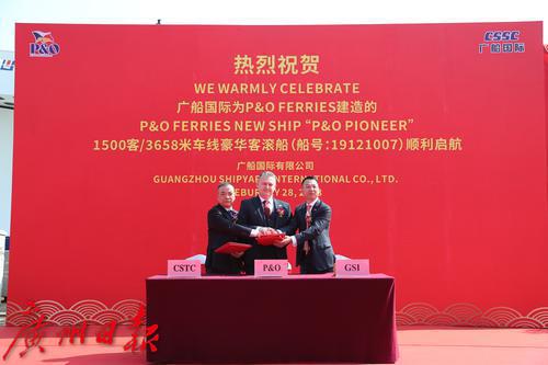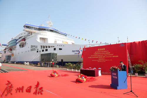 “油电混动、四驱推进,双向航行、内装奢华”,2月28日,由中国船舶集团旗下广船国际为英国P&O Ferries公司打造的全球首艘大容量电池混动双头豪华客滚船“PIONEER(先锋)”号——1500客/3658米车道豪华客滚船首制船举行启航仪式暨媒体开放日活动。