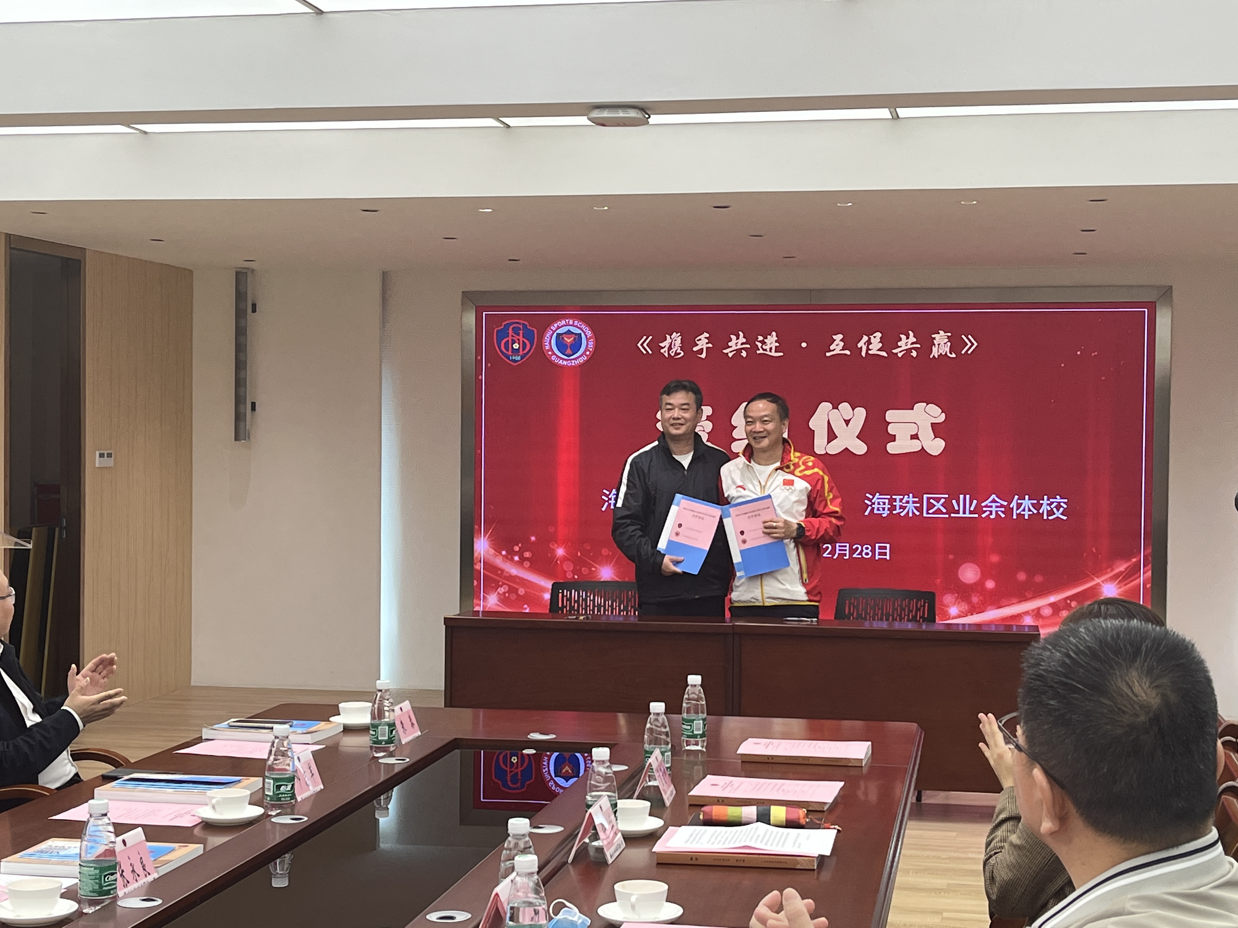 2月28日,海珠区实验小学、海珠区业余体校正式签署《携手共进 • 互促共赢》海珠区体教融合促进青少年健康发展战略合作协议——海珠区实验小学正式成为海珠区业余体校分教点,海珠区业余体校的优秀教练将直接进校,担任必修课教学和校队训练工作,实现教育与体育部门在学校体育教育工作和体育后备人才培养等方面的深度融合,助力拓宽体育后备人才培养选拨渠道,储备竞技人才梯队,输送更多高水平优秀人才。