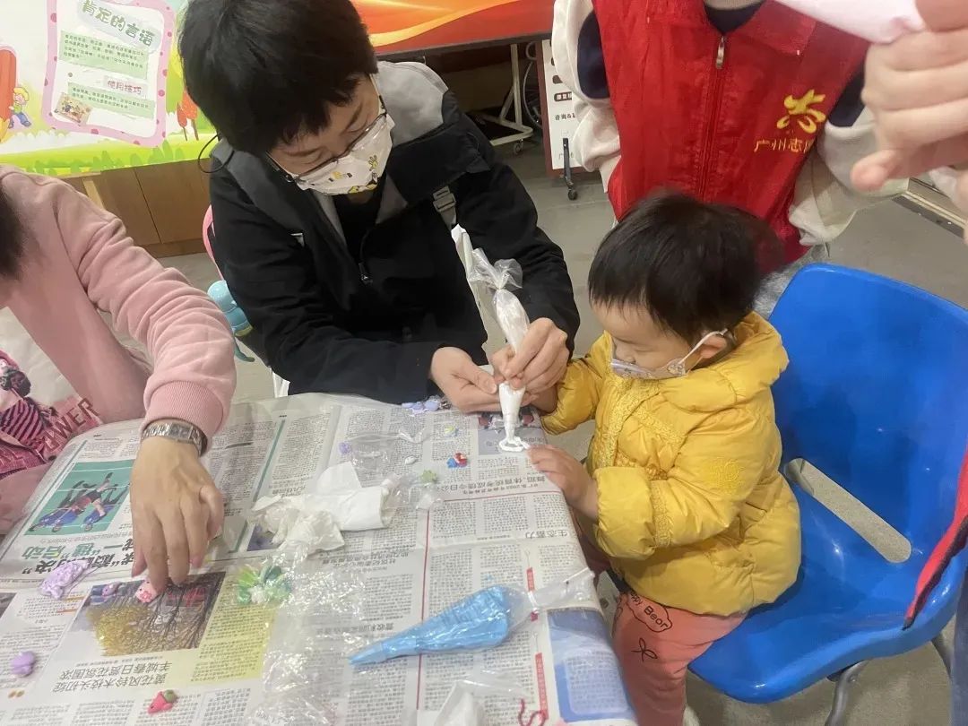 最欢乐的要数“精心时刻”活动了,家长和孩子一起制作奶油胶,还有的小朋友将自己制作的奶油胶发夹夹在家长头上……在“寻找爱之语”的环节中,亲子认真阅读摊位上有关“爱的五种语言”的宣传知识,在相互沟通后,用贴纸来表达自己期望的爱之语,鼓励家长选择孩子希望的表达方式来传递爱意。