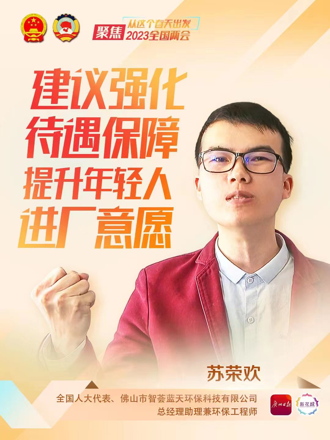 春节刚过,全国人大代表、佛山市智荟蓝天环保科技有限公司总经理助理兼环保工程师苏荣欢便开始忙碌起来,他不是在工厂一线,就是在走访调研。“就是希望通过更多的调研让建议更加完善。”苏荣欢说,再次成为全国人大代表,他既感到高兴,也感受到沉甸甸的责任。苏荣欢表示,今年他的建议将重点关注技能型人才发展、垃圾分类和回收、环保产业、消防四个方面话题,希望能为国家高质量发展贡献自己的力量。