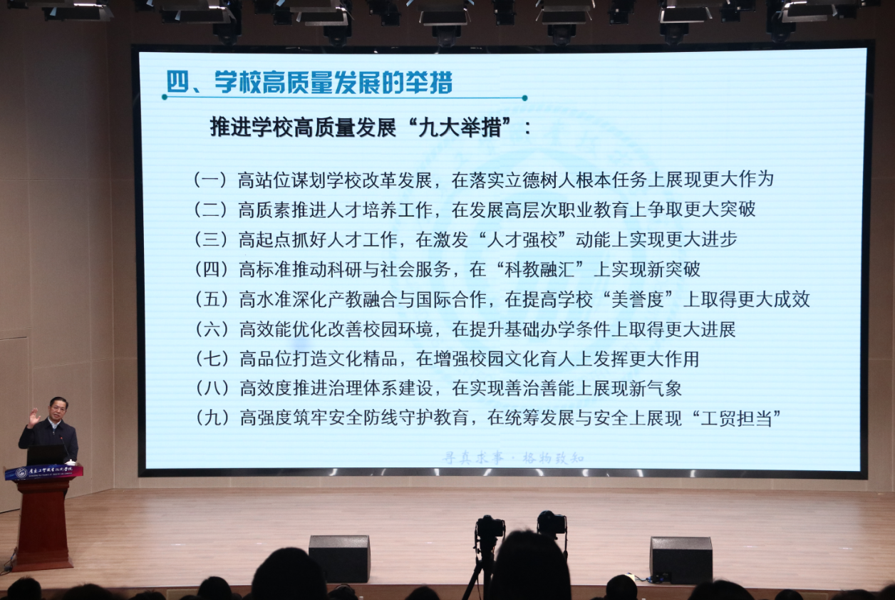 何汉武表示,在实现高质量发展的道路上,学校将充分激发“人才强校”动能,“十四五”期间将新增博士100名,着力引进高技能人才,提升“双师”比例,打造高水平企业兼职教师和产业导师队伍。