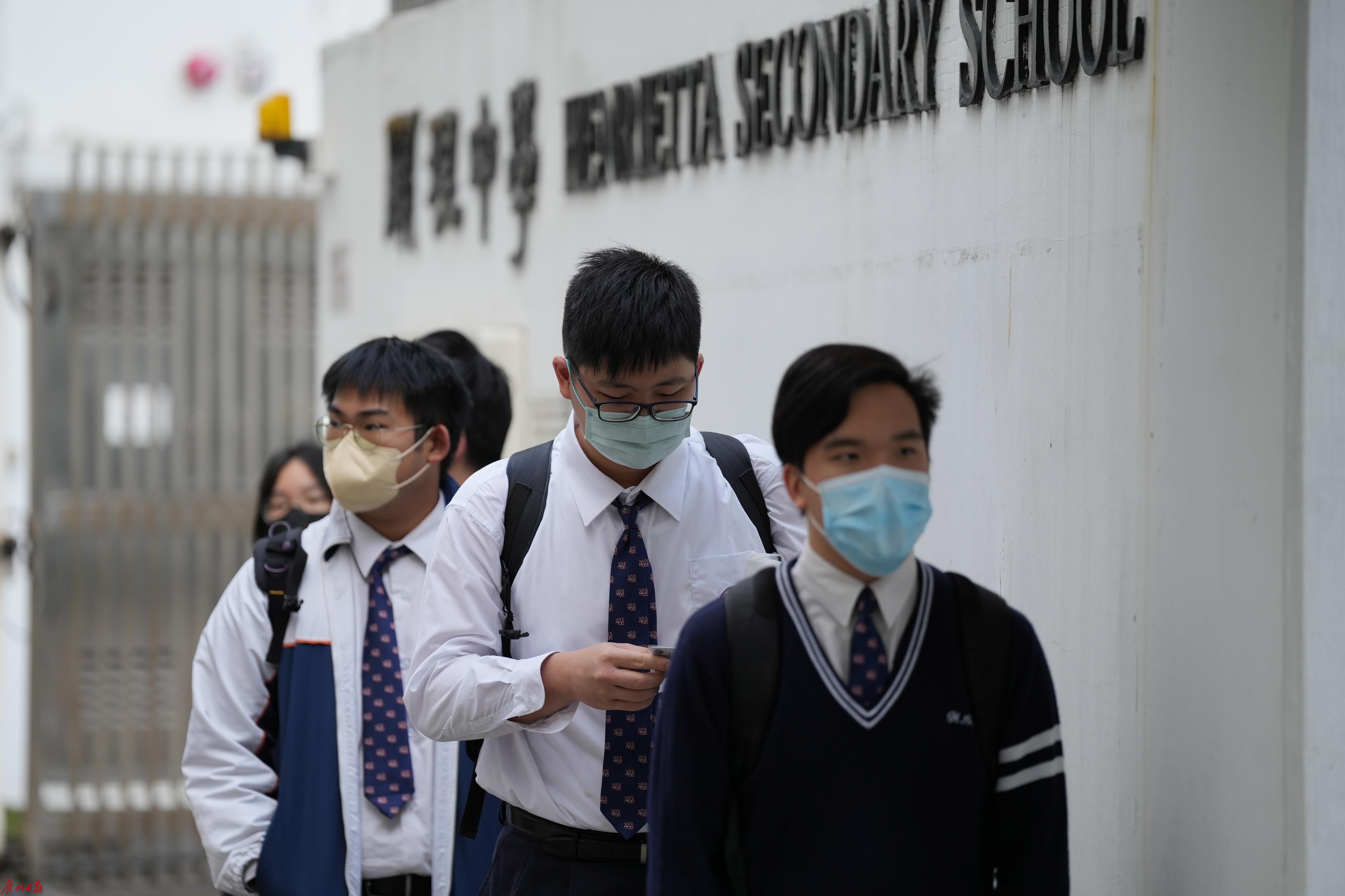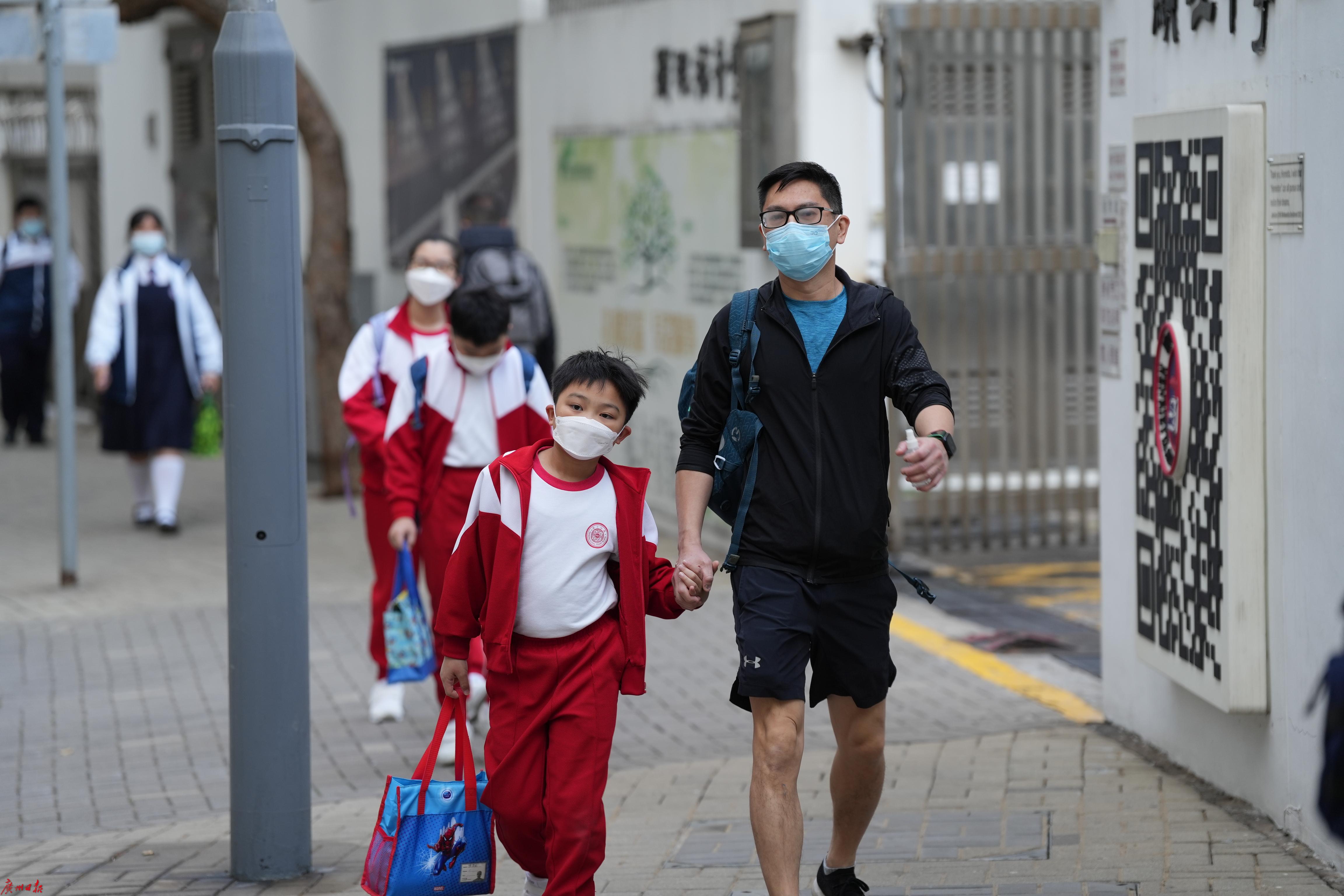 在北角几间学校,戴口罩的师生和家长的比例记者的统计几乎是百分百,学校在门口的职工告诉记者,没有刻意通知戴口罩还是不戴口罩。