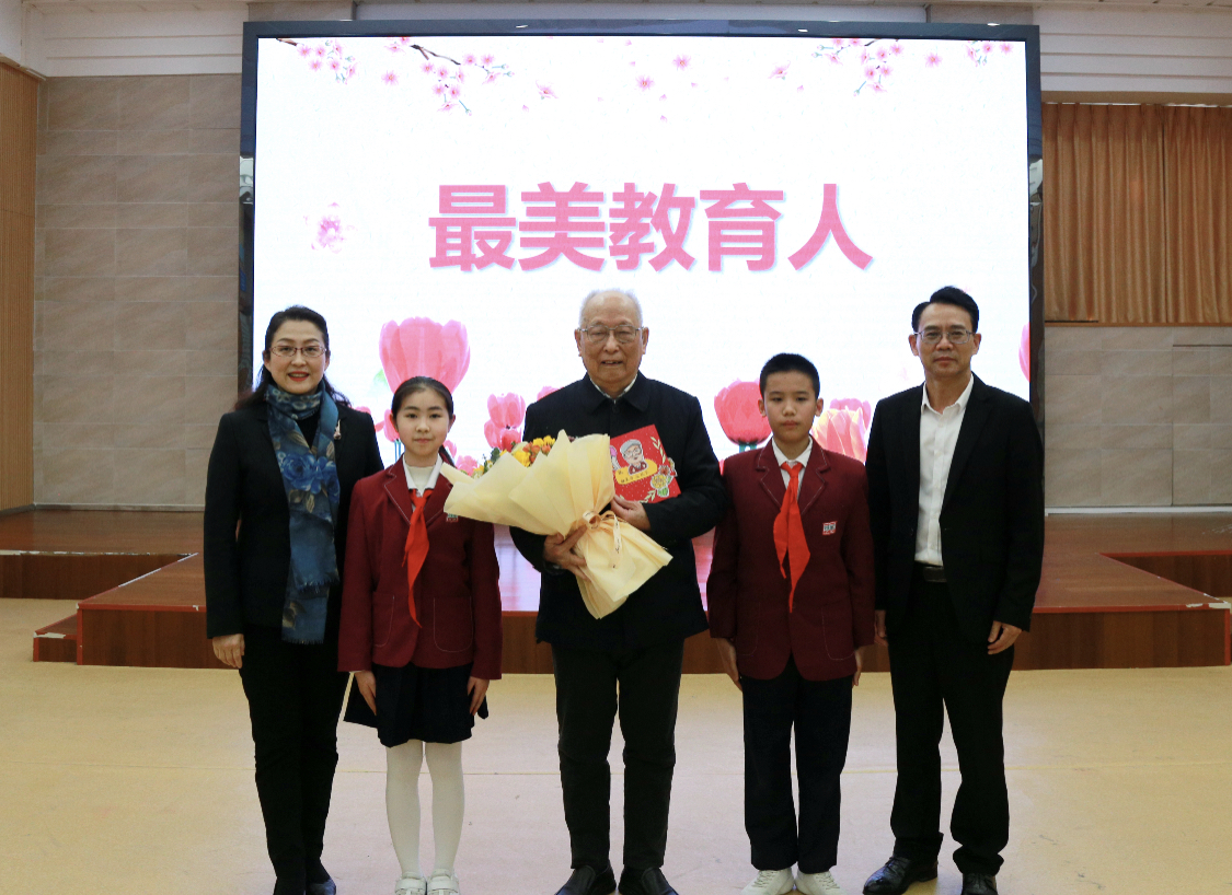 活动中,禅城区教育发展中心主任李安清为庞校长颁发“最美教育人”证书。铁军小学的大队委们则用贺卡传递情意,表达对“最美教育人”庞校长的爱戴、尊重和敬仰之情。