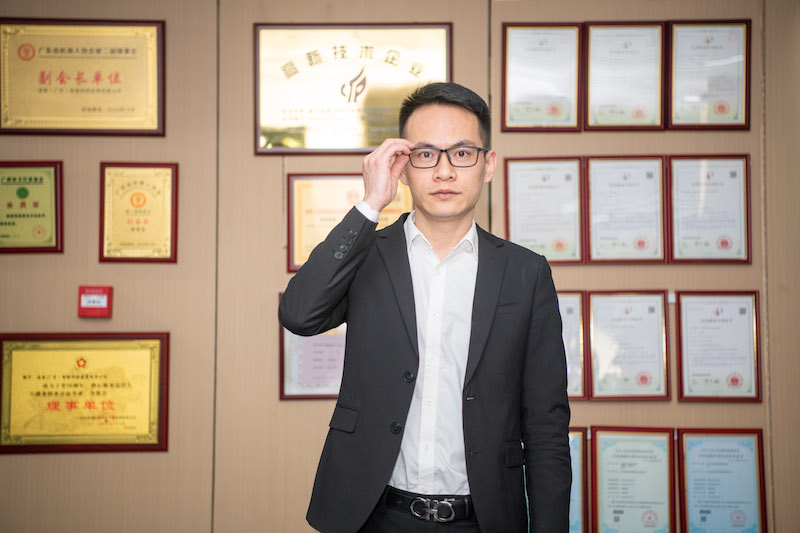 在广州黄埔区一座建成不到两年的写字楼内,同样年轻的凌度(广东)智能科技发展有限公司坐落于此。在公司的休息区域,各式各样的饮料咖啡、饼干甜点,无不显示着这座公司的年轻朝气。只有公司创始人黄俊生显得异常严肃,在接受采访时眉头几乎皱成了“川”字,直到旁边聚集的员工越来越多,他才有些绷不住了,朝着大家不好意思地挥了挥手,笑着说“不要看,不要看。”
