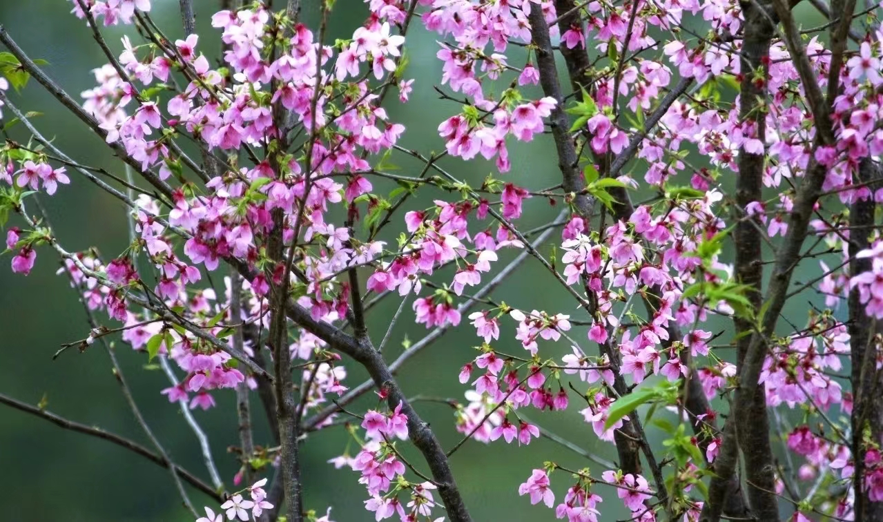 山深未必得春迟,处处山樱花压枝。桃李不言随雨意,亦知终是有晴时。