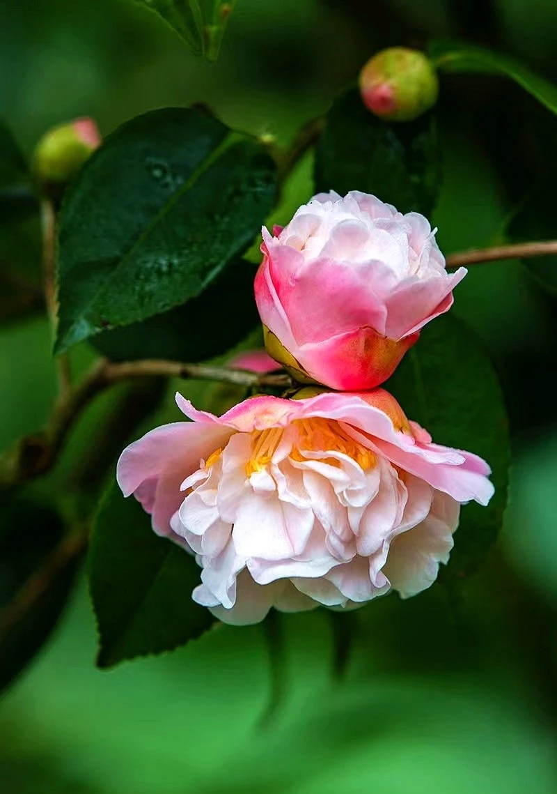 山茶花的花瓣层层叠叠,柔软而有弹性,散发着淡淡的清香。蜜蜂在花间肆意飞舞,采集花蜜,为这片花海增添了不少的活力。