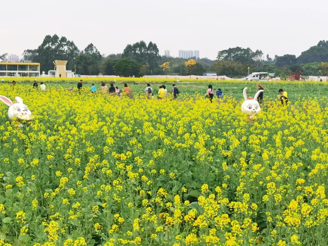 2月24日,油菜花节暨梦幻星空夜游季活动在广州增城丝苗米稻田公园开幕,金灿灿的油菜花田,吸引了众多游客。