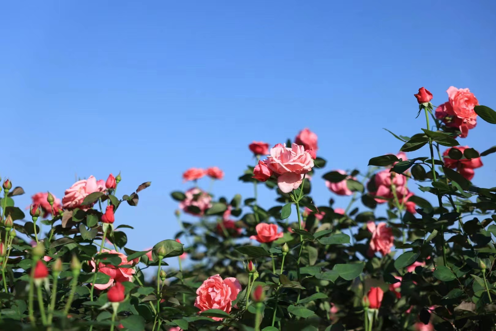满目金黄的油菜花、浓艳娇嫩的各色玫瑰……