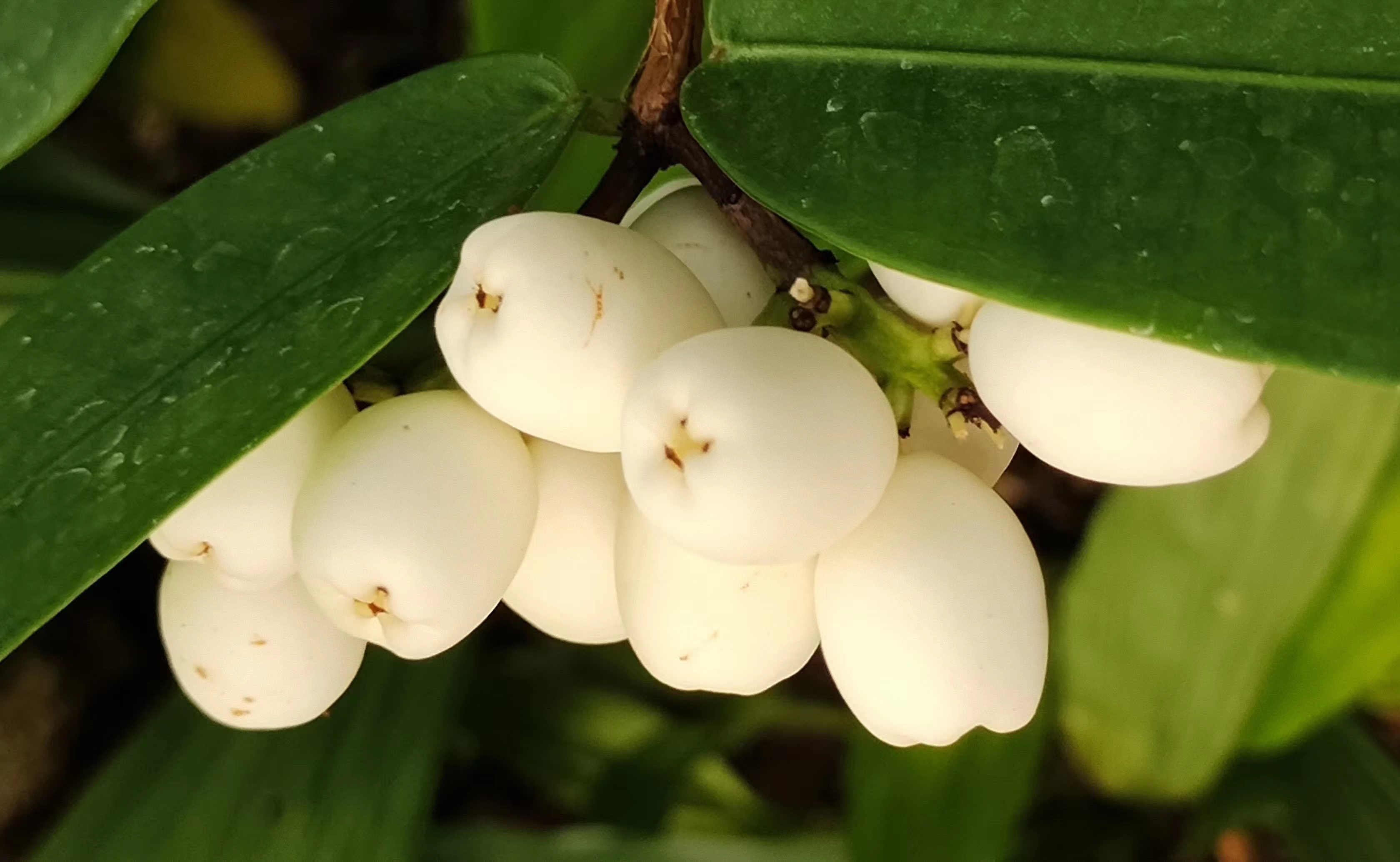 细节决定成败,花丝顶端的白色“珍珠粒”也相当吸引眼球,比挂在前襟的胸花还要精致。至于威尔逊蒲桃的果实也非常“可观”,白色的卵圆形果实圆润光洁,扎堆成簇挂在枝头,不仅看上去好吃,也可用来制作果酱。