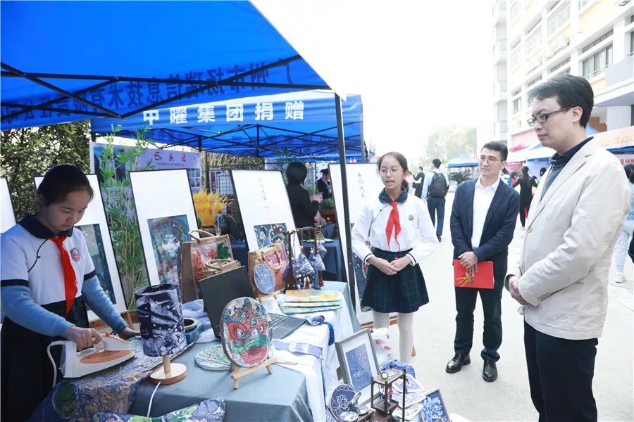 西片各校的课程有极具民族风格特色的工艺蜡染、扎染、香云纱方巾服饰设计制作;有广府文化特色的织绣醒狮;有融乐非遗文化的石湾陶瓷、岭南压花;有心灵手巧的手工编织;有农耕文化特色的木道课程展示;有中草药文化为主题的艾草香囊、花食、花茶等;有亲近大自然的石头画、趣味花艺、园林设计,还有科技元素满满的智能机器人、自动浇花器等等。
