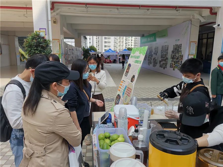 番禺区钟村中学劳动小能手展示“手打柠檬茶”。