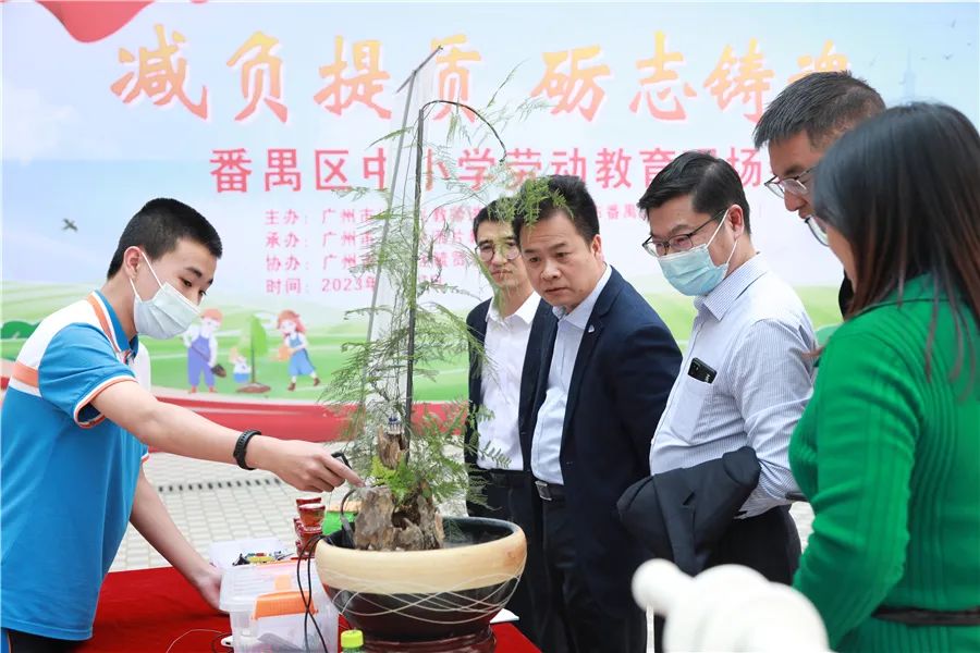 黎耀威表示,“砺志铸魂”是番禺劳动教育的品牌,也是番禺区高质量发展的品牌,各校要推进番禺劳动教育高质量发展,全区各校结合当前教育形势,从以下几个方面着实推动劳动教育高质量发展。一是严格落实师资队伍建设,至少配备一名劳动教育专任教师。二是义务教育阶段学校深研新课程方案,新课标,认真落实完善学校课程方案,以“融·乐”课堂研究推动劳动学科的高质量发展。三是完善劳动课程建设,以科研引领,积极探索创建学校的劳动教育特色课程或项目,努力开创番禺区中小学劳动教育的新局面,加快实现番禺教育高质量发展。