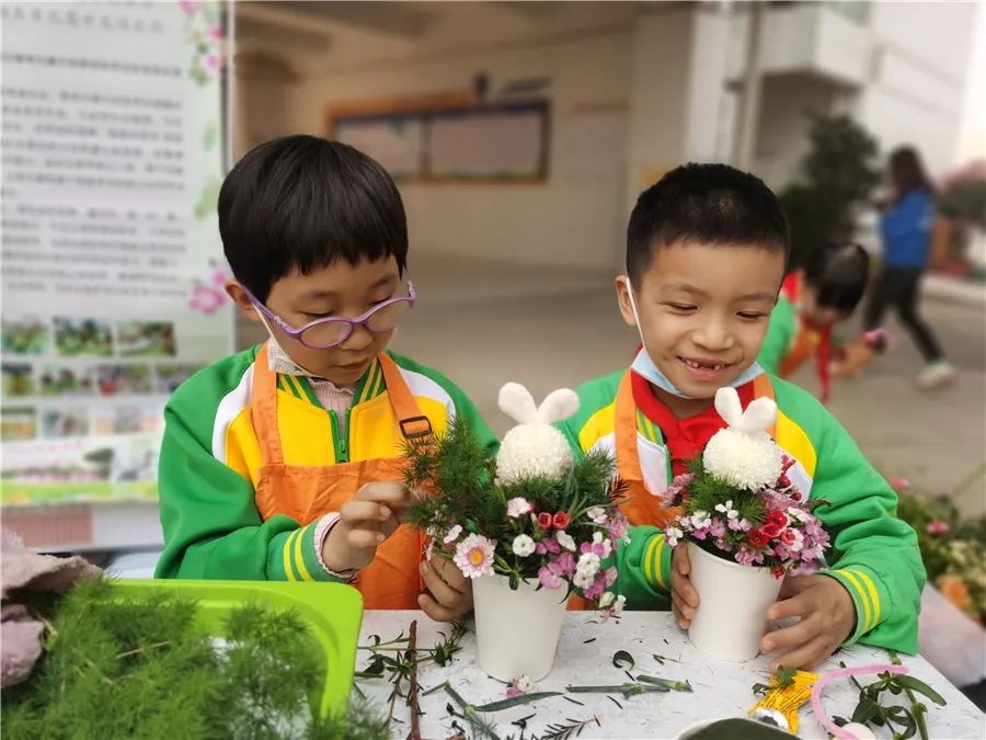 番禺区钟村中心小学展示《趣味花艺》课程。