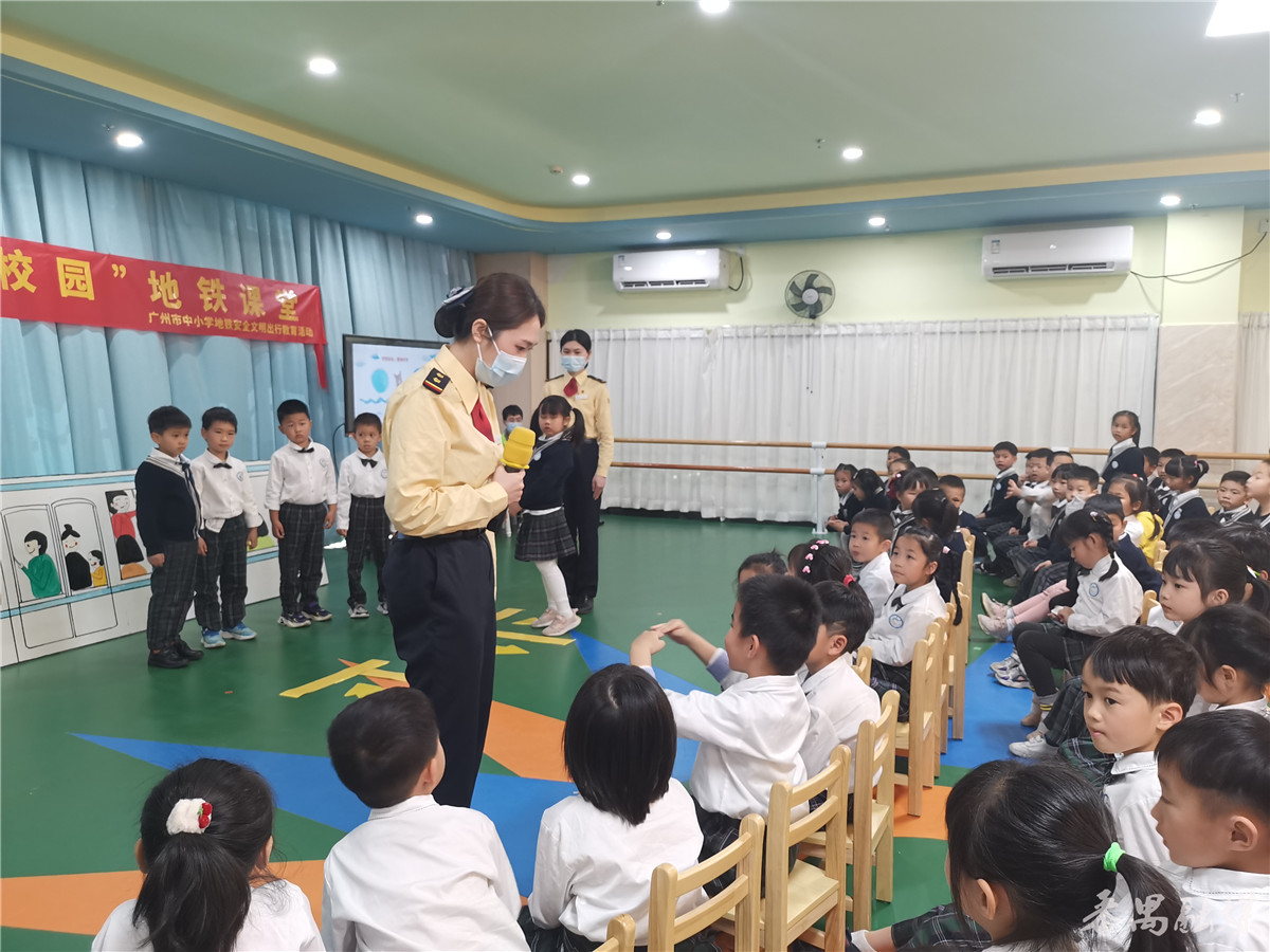 在孩子们的欢声笑语中,地铁课堂很快接近尾声。广州地铁和动车所的工作人员提问:“你们今天都学到了什么?”孩子们纷纷回答:“要按地铁指示标识候车”“在地铁车厢内禁止乱跑打闹”……