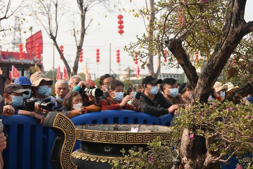 南海神庙前广场的观众们早早就位,有的找好位置架起“长枪短炮”,只为见证与记录这一盛大庙会的开启。