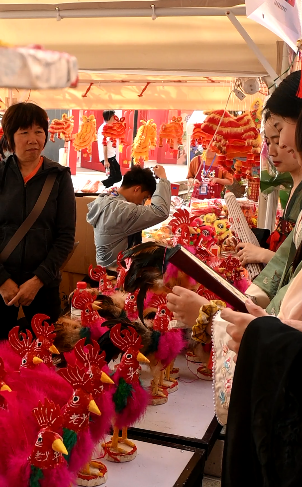在一处售卖传统工艺波罗鸡的摊位上,摊主向记者详细介绍了波罗鸡的制作工艺及文化寓意:“这样一只小小的波罗鸡,要经历36道工序,各部位多次黏合晒干,近30天时间的打磨才能完成。游波罗买波罗鸡是我们这里多年来的传统习俗,以前传说每年波罗诞卖出的上万只波罗鸡中,有一只会在隔日清晨真的啼叫起来,带给它的主人好运,大家买波罗鸡既是好看好玩,也是图一个好意头。”