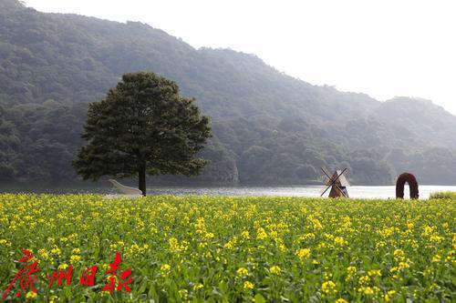 2004年,公园开始尝试种植一片面积近百亩的天池花海,结合时令种植不同的特色花卉。广州最美三月天,这里种植的是高山油菜花,从春节开始会陆续绽放金黄色的花朵。记者昨日在天池花海看见,群山环抱,高山湖泊,花海与广州唯一一片的1.6万亩原始次生林隔天池相望,蓝天、白云、青山、绿水、鲜花浑然一体,美轮美奂。