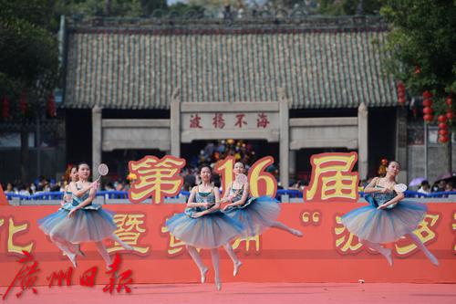 3月4日,黄埔“波罗诞”进入最后一天的活动,当天下午,岭南民俗歌舞展演再一次将现场的气氛拉到高潮,当天下午进行的是黄埔区青少年宫的专场展演,舞龙、舞狮、武术、芭蕾舞、拉丁舞等节目不断上演,青少年朋友们的精彩表演赢得现场市民游客们的阵阵喝彩声。
