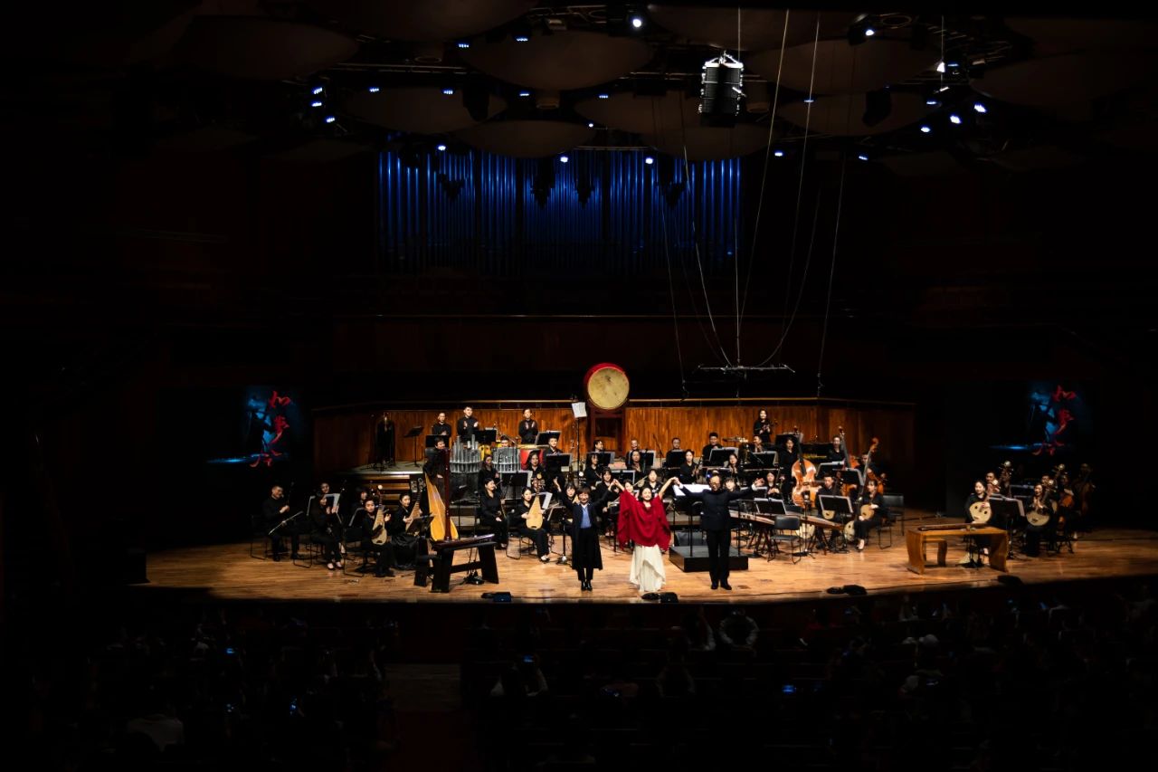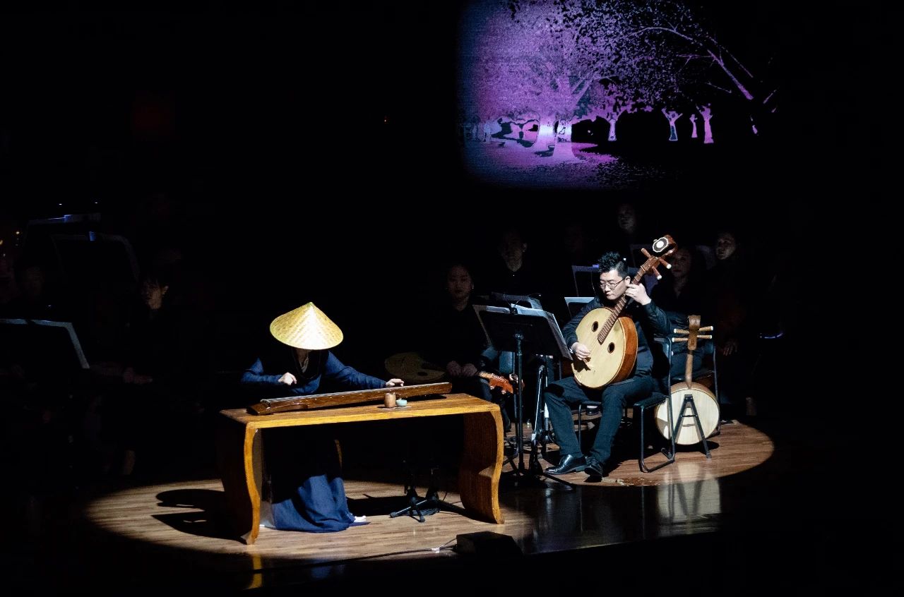 这是广东民族乐团联合星海音乐厅打造的首部沉浸式诗词琴歌音乐剧场,作为乐团拓展音乐厅舞台的创新实践,乐团的演奏家以各种乐器与何怡演奏的古琴展开 “对话”,让观众感受到民族室内乐精彩交织的重奏魅力。