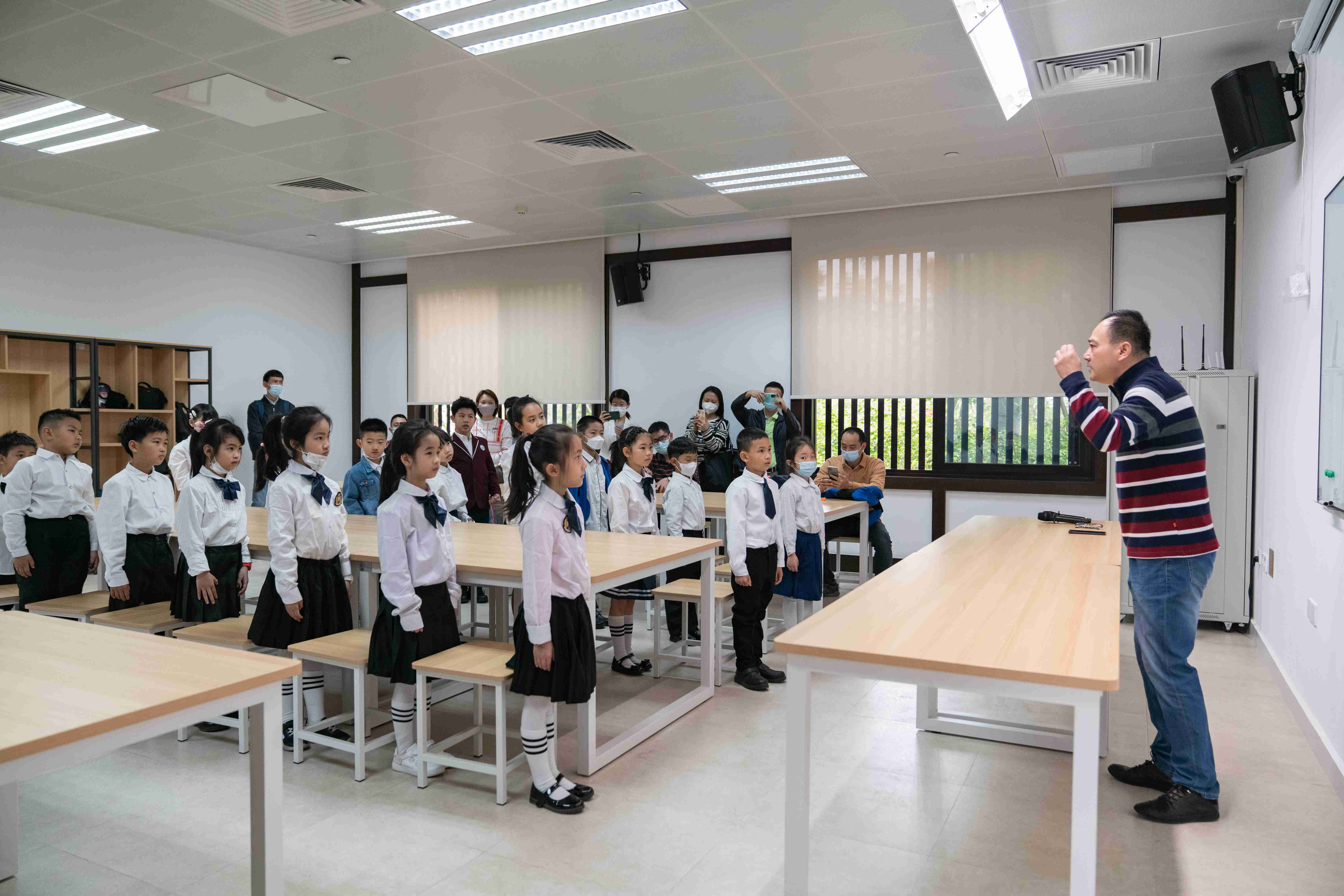 在广州市文化馆多媒体教室里,“飞花令”和“诵读古诗”活动精彩上演。“飞花令”作为传统诗词游戏,得到了同学们的热烈欢迎,大家争先恐后,踊跃参与。同学们诗词储备丰厚,教室里妙句频出,引来声声赞叹。“诵读古诗”现场,同学们用稚嫩的童声朗诵古今名篇,抑扬顿挫中,千古诗韵悠悠流淌。自越秀区五羊小学的毛同学分享了自己的上课感受:“在玩中学、学中玩,可以更好地把表演融入生活里,也让诗词记忆变得更有趣、更牢固。”